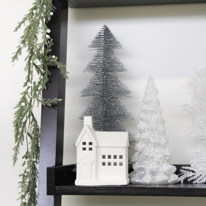 Enhance your holiday decor with this set of two Frosted Pearl LED Trees. Made from glass and delicately embellished, these trees emit a warm glow with LED lights, adding a touch of magic to your home. Batteries not included.