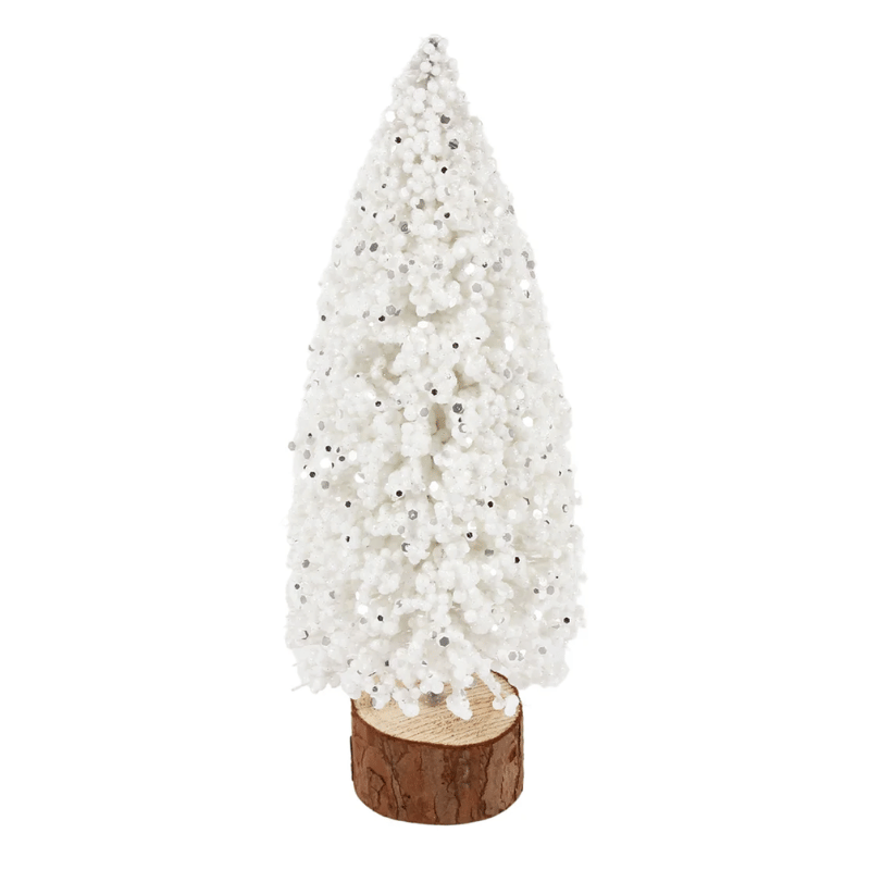 There is no better way to add charm to a room than with these festive frosted trees. Standing solid on a wood base, these self-standing Christmas trees add a sparkle of holiday cheer to any room with a soft shimmer.