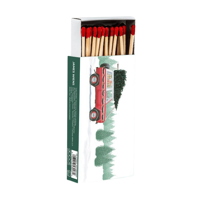 Light up everything from candles to fireplaces with this car & Truck with Trees Matchbox. A wonderfully festive accent to any holiday decor. Includes 45 matchsticks.