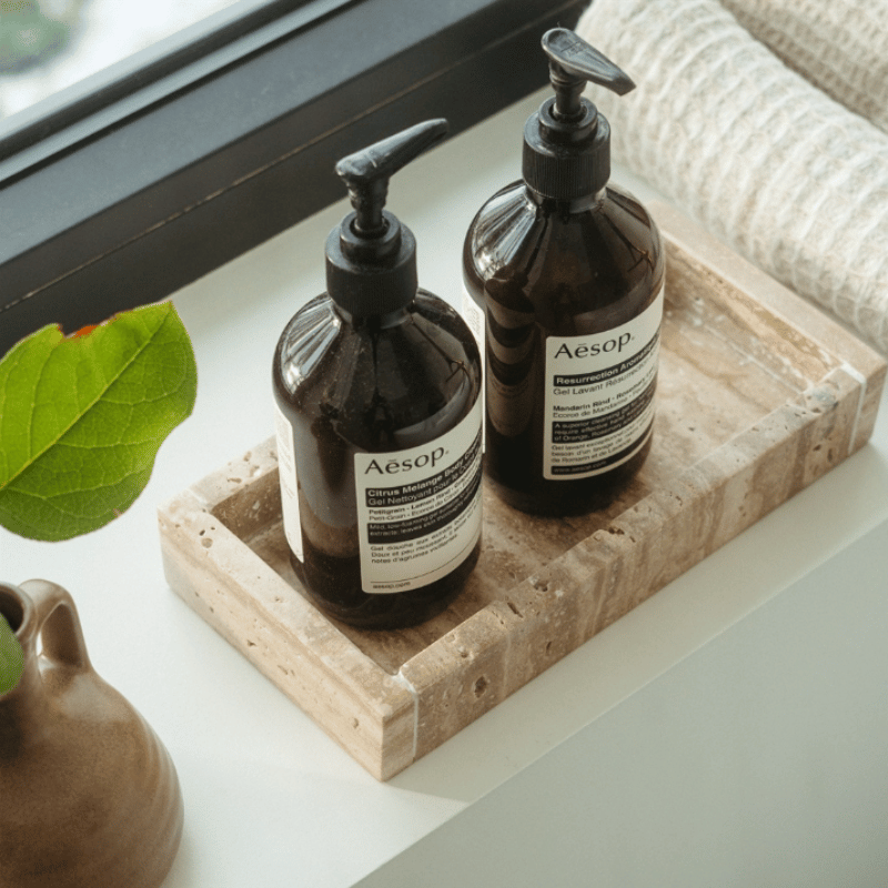 Keep your essentials neatly organized with the Rectangular Travertine Tray. Designed with an elevated lip to contain items, this compact tray is perfect for small spaces like countertops, vanities, or entryway tables. The natural travertine stone showcases warm, earthy tones that add a subtle touch of elegance to your home.