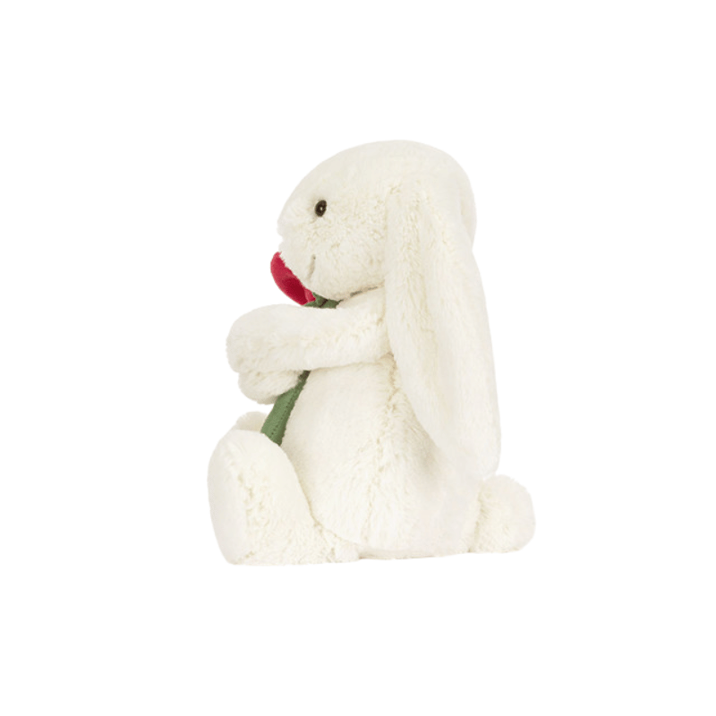 Calm, un-rushable Jellycat's Cream Bunny with Rose takes the time to notice the beauty all around her.