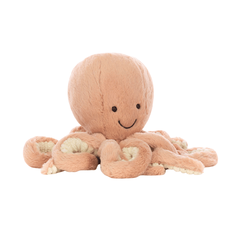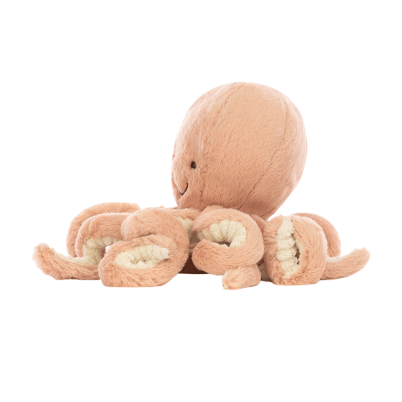 Get tangled up with gorgeous Odell Octopus! This Jellycat has a squishy, splendid brick-red octopus, she has so much love to give! Smiley and silly, with bright, glossy eyes, she's a very friendly cephalopod. Odell has eight fine, curly arms with cozy cordy and classic fur. No surprise that she gives the best hugs in the ocean! Handwash only.