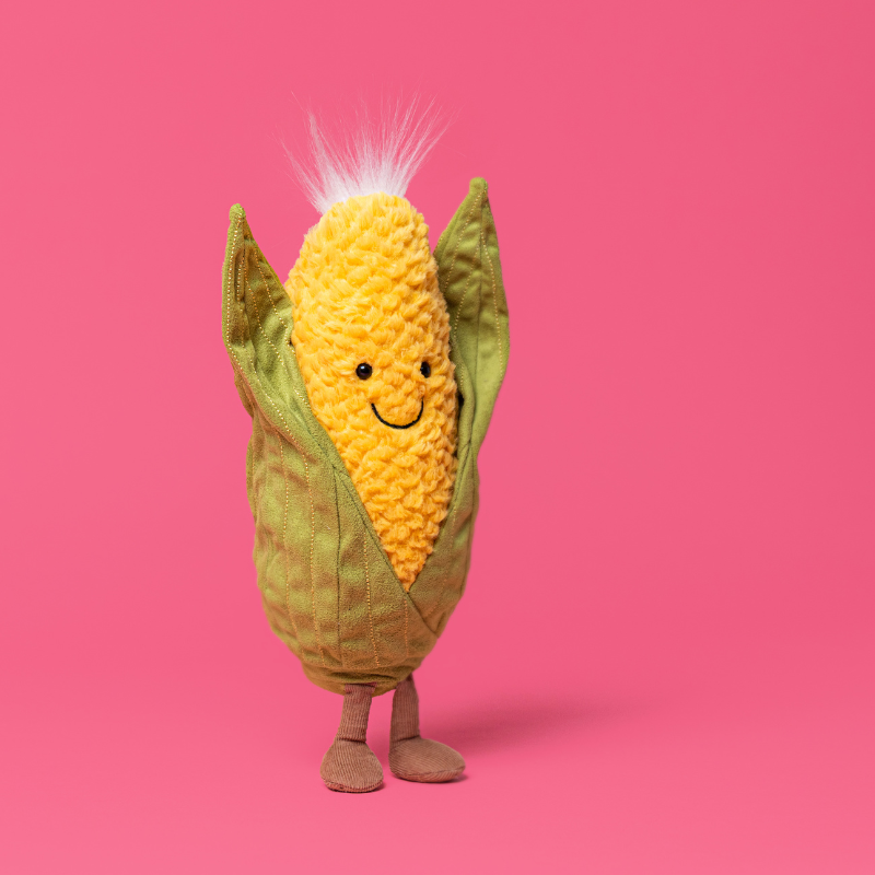 Every morning, rain or shine, Jellycat's Amuseables Sweetcorn is the first to cannonball into the lake – kernels and all!