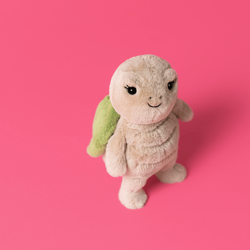 Thimble Turtle is Jellycat's Timmy Turtle’s little sister, full of energy and enough spark to keep him on his toes. She loves to explore, sing at the top of her voice, and invent elaborate expeditions that usually end with Timmy sighing and fetching the map...